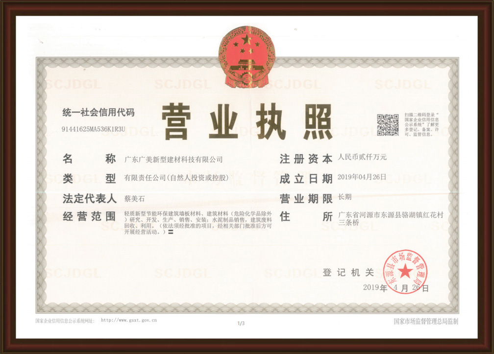廣東廣美新型建材科技有限公司成立于2019年,坐落于廣東省河源市,廠區占地面積約80000平方米,是一家擁有年產量為100萬平方米,集自主研發、生產、銷售和安裝為一體的輕質新型墻板生產企業。本公司生產的輕質隔墻板被廣泛應用于酒店,商住樓 ,商場,鋼結構建筑、寫字樓以及公建項目等大型建筑(基礎設施)領域。公司秉承“誠信為立足之本,質量為生存之源,服務為發展之道”的經營理念,為廣大客戶提供優質的產品與方案。 公司全體成員愿與您一起共筑改革時代的新篇章!